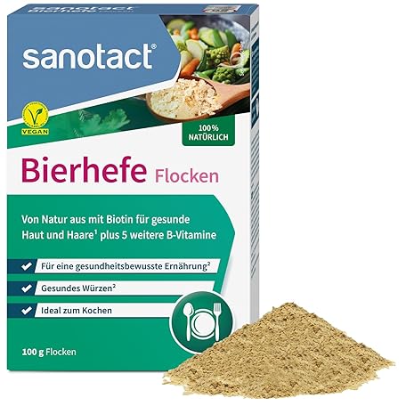Sản phẩm sanotact Brewer's Yeast Flakes (100 g) • 100% Natural Beer Yeast Flakes • Yeast Flakes with Biotin & 5 B Vitamins for Skin, Hair, Nails • Ideal for Cooking as Vegan Parmesan & for Seasoning đang được bán với giá ưu đãi là $3.5098 tại nước Đức.