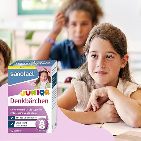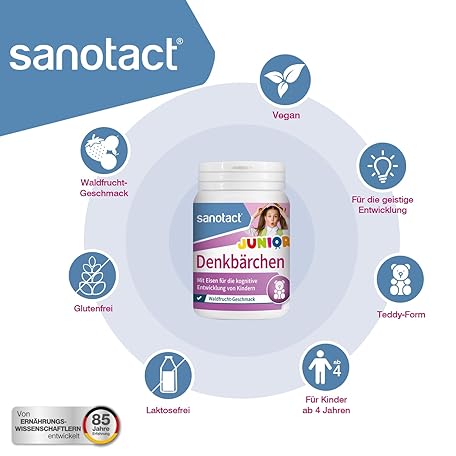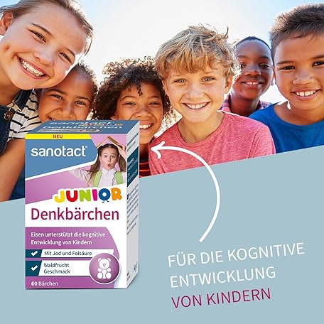 Sản phẩm sanotact Denkbärchen Junior (60 Lutschtabletten) • Mit Eisen, Folsäure & Jod • Eisen Tabletten für die kognitive Entwicklung bei Kindern • Vitamine für Kinder • Waldfrucht-Geschmack đang được bán với giá ưu đãi là $5.014 tại nước Đức.