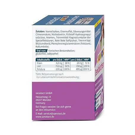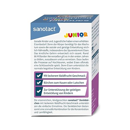 Thông tin sản phẩm sanotact Denkbärchen Junior (60 Lutschtabletten) • Mit Eisen, Folsäure & Jod • Eisen Tabletten für die kognitive Entwicklung bei Kindern • Vitamine für Kinder • Waldfrucht-Geschmack
