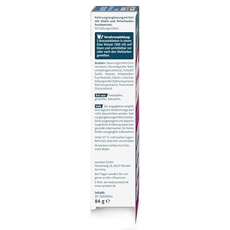 Thông tin sản phẩm sanotact Fat Digestion Drink (20 Effervescent Tablets), Artichoke with Choline for Fat Metabolism and Liver Function, Effervescent Tablets for Quick Digestion, With Grapefruit Flavour