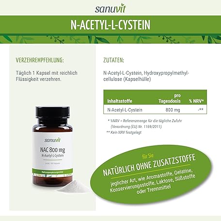 Sản phẩm Sanuvit® - NAC | 180 Kapseln | Hochdosiert | N-Acetyl-L-Cystein | Hohe Bioverfügbarkeit und Verträglichkeit | Vegan | Hergestellt in Österreich (180 Stück, 800 mg) đang được bán với giá ưu đãi là $24.0018 tại nước Đức.