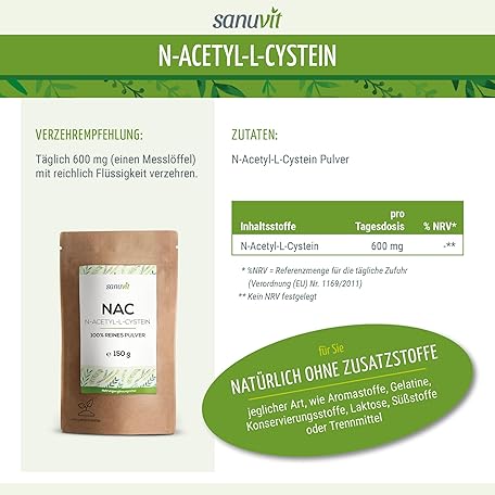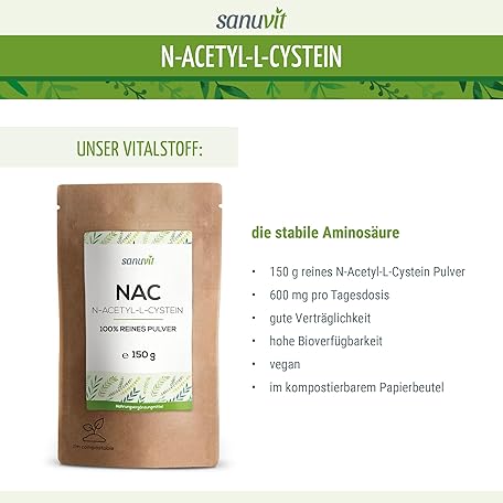 Sản phẩm Sanuvit® - NAC Powder | 150g per Bag | 6 Month Supply | N-Acetyl-L-Cysteine | High Bioavailability and Compatibility | Vegan | Made in Austria đang được bán với giá ưu đãi là $19.0641 tại nước Đức.