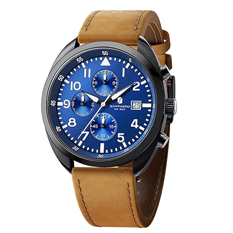 SAPPHERO Men's Quartz Watch Analogue Leather Strap Classic Business Watch with Arabic Numerals Display, Easy to Read - Fashion Casual Chronograph Watch