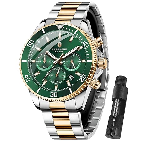 SAPPHERO Watches Men's Chronograph Analogue Quartz 50 m Waterproof Watch Men's Fashion Casual Business Men's Watches with Calendar Stainless Steel Strap Watch Gift for Men