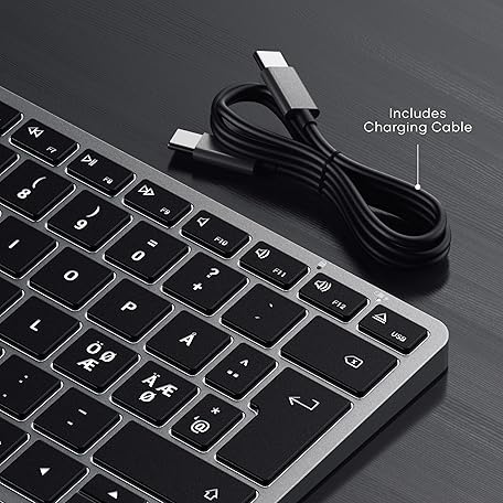 • SATECHI Slim X1 Bluetooth Keyboard with Lighting - Multi-Device Connection - For MacBook Air/Pro M4, iPad Air/Pro M4, iPad/Mini, Mac Mini, iMac (US Layout)