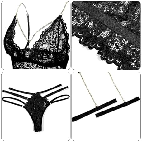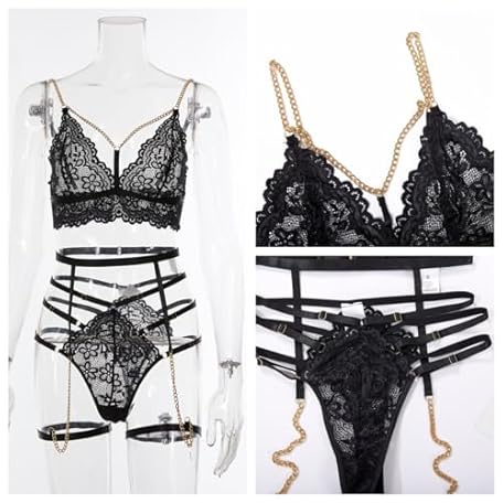 Sản phẩm Satohom Lingerie 3-Piece Women's Sexy Shiny Metal Chain Suspenders Adjustable Shoulder Strap Underwear Lingerie Set for Women with Push Up Lace Bra and Briefs with Suspenders with Leg Bands đang được bán với giá ưu đãi là $15.3472 tại nước Đức.