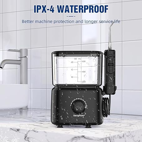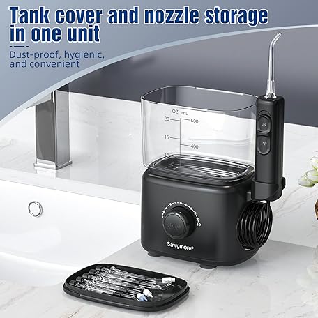 Thông tin sản phẩm Sawgmore Oral Irrigator with 10 Adjustable Pressure Levels, 600 ml Capacity, Oral Irrigator with 5 Multifunctional Nozzle Tips for Home (Black)