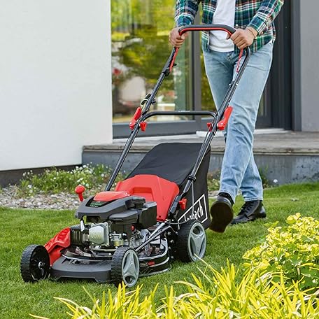 Sản phẩm Scheppach MP150-46 Petrol Lawnmower, 3.7 HP 150 cm³, 5-in-1 Mower, 46 cm Cutting Width, 7-Level Cutting Height Adjustment, 55 Litre Catch Basket with Level Indicator đang được bán với giá ưu đãi là $241.217 tại nước Đức.