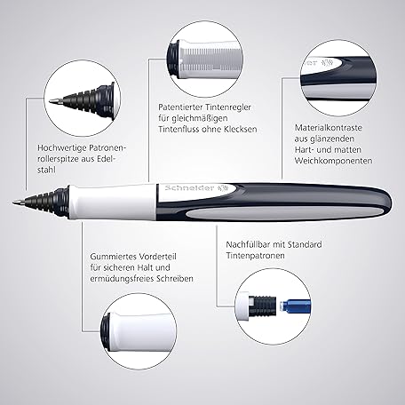 Thông tin sản phẩm Schneider Ray Rollerball Pen, Refillable with Standard Ink Cartridges, Suitable for Right and Left Handed Users