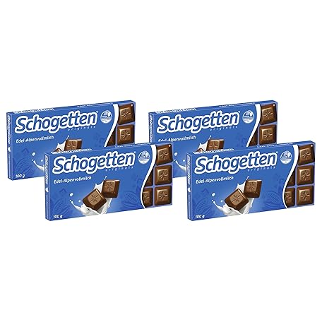 Schogetten Precious Alpine Milk 100 g Chocolate Bar, Practically Individually Portioned. A Delight. Piece by Piece. (Pack of 4)