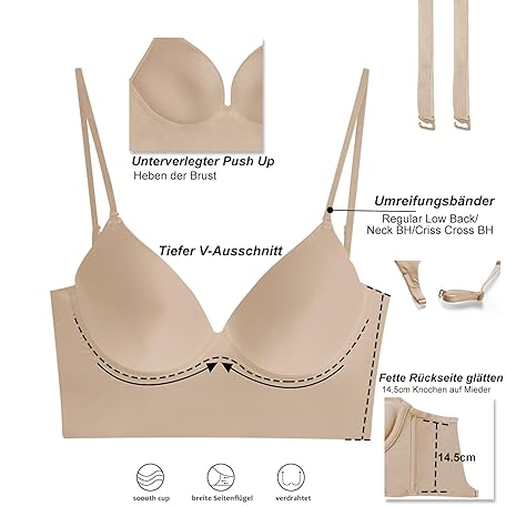 Sản phẩm SEAGETTINO Low Back Bra for Women Push Up Deep V Neck Deep Backless Bra Multiway Straps Convertible Bra Wire Lifting Bra đang được bán với giá ưu đãi là $31.6972 tại nước Đức.