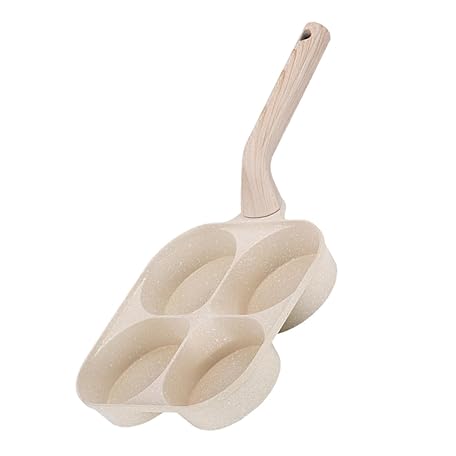 • SECFOU Antihaft Beschichtete Vierfach Pfanne für Frühstücks eierburger Tiefe Form Beige Schnelle Zubereitung Geeignet für Induktion und Gasherd Praktischer Küchenhelfer für Vielseitiges