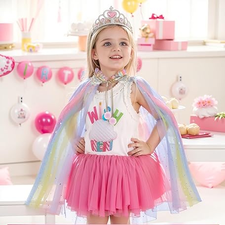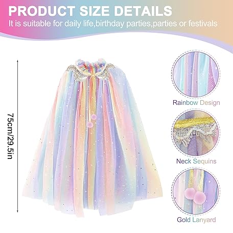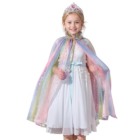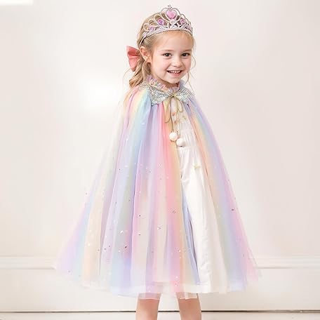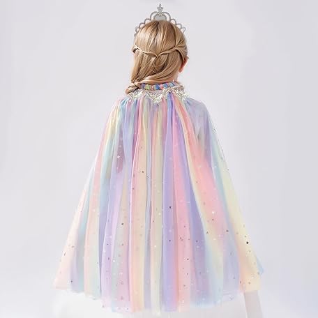 Thông tin sản phẩm SEFIRST Princess Cape Children's Girls, Princess Costume with Crown, Halloween Costume Cape, Tulle Glitter Sequins, Princess Cape, Fancy Dress Princess for Carnival, Cosplay Party (Colourful, 75 cm)