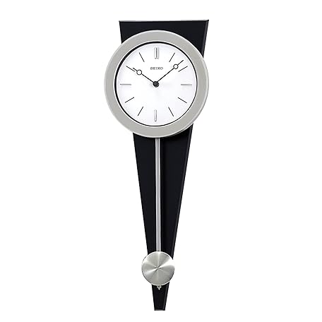 Seiko Seiko Wall Pendulum Clock Silver-Tone Case on Black Solid Wood Base