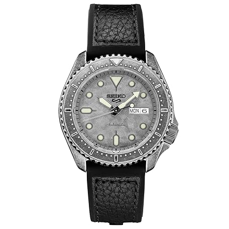 Seiko SRPE79 5 Sports Automatikuhr, 24 Steine, graues Finish, mit Lederband