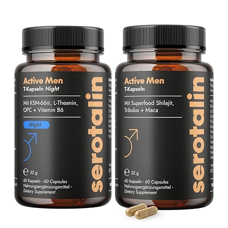 Sản phẩm serotalin Men Day & Night Vorteilspaket | Active Men T-Kapseln mit Maca & Night mit Ashwagandha hochdosiert | Made in Germany | 2 x 60 Kapseln đang được bán với giá ưu đãi là $63.0565 tại nước Đức.