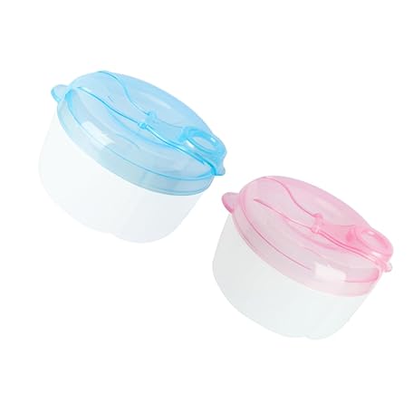 Set of 2 Milk Powder Box with Compartments, Leak-proof Storage Container for Infant Food, Practical Scoop for On the Go, Blue and Pink