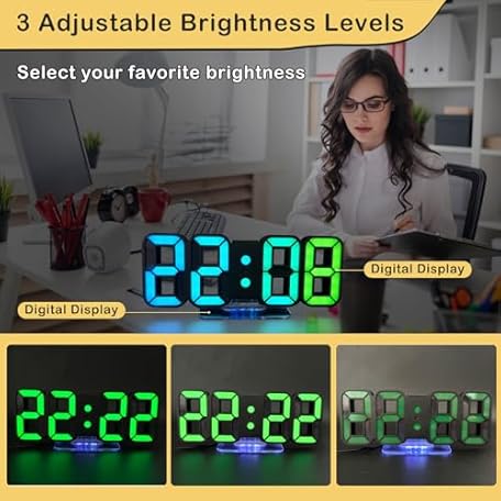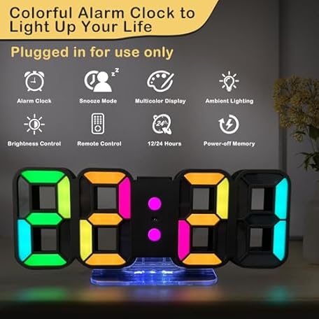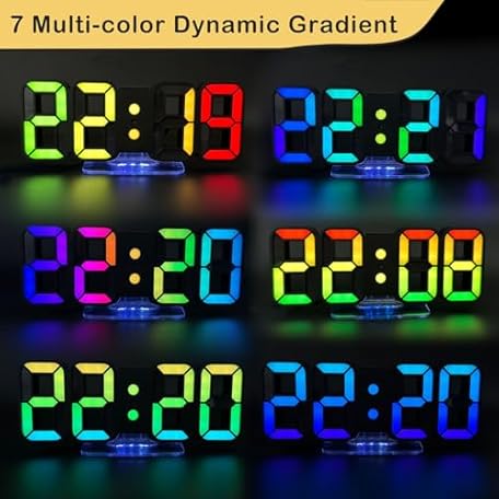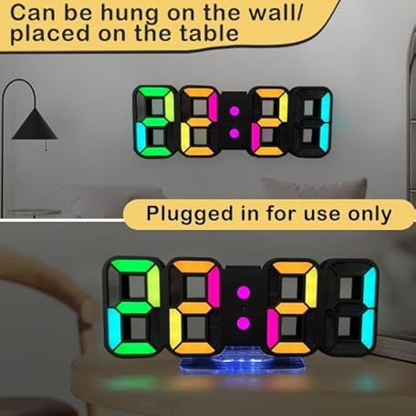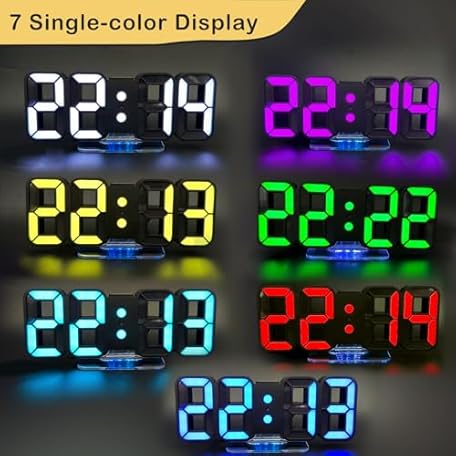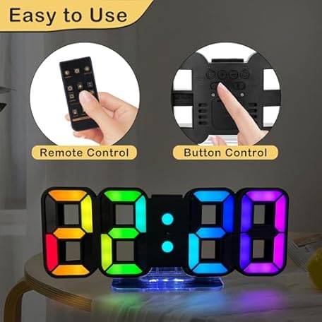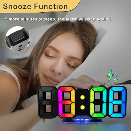 Thông tin sản phẩm Seutgjie 3D LED Digital Alarm Clock, Table Clock/Wall Clock, Digital Clock, 14 RGB Colour Changing, 12/24 Hours, 3 Brightness Adjustments, Night Brightness Mode, Snooze Mode with Remote Control, Black