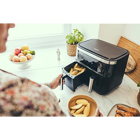 Thông tin sản phẩm SEVERIN Double Hot Air Fryer with 2 x 3.8 L Cooking Space, XXL Hot Air Fryer for Healthy Cooking, 8 Automatic Programmes, Fryer without Fat with Drying Function, 2850 W, Black/Silver, FR 2453