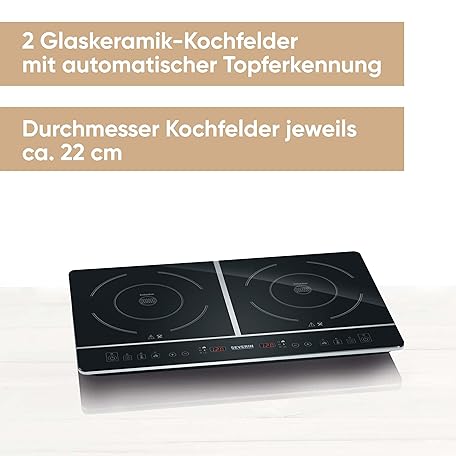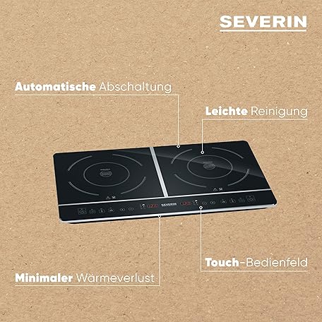 Thông tin sản phẩm SEVERIN Double Hot Plate Induction for Kitchen, Office or Camping, High-Quality Hob, Camping Stove for Two Pots, Black, 3,400 W, DK 1031