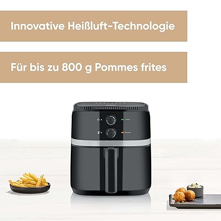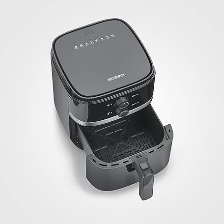 Thông tin sản phẩm SEVERIN FR 2452 Hot Air Fryer with 5 Litre Cooking Space, Hot Air Fryer for Healthy Cooking, Fryer without Fat with Non-Stick Fryer Basket, 1500 W, Black/Silver
