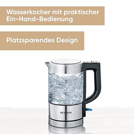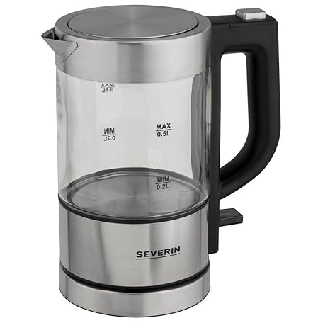 Thông tin sản phẩm SEVERIN Mini Glass Kettle 0.5 L, Powerful and Compact in High-Quality Design, Electric Kettle with Limescale Filter, Stainless Steel/Black, WK 3472
