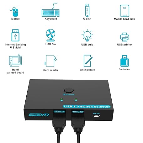 Thương hiệu SGEYR là cái tên nổi tiếng được rất nhiều khách hàng trên thế giới chọn lựa. Với kiểu dáng đẹp mắt, sang trọng, sản phẩm SGEYR 4 Ports USB 2.0 Switch 2 in 4 Out USB Switch with 2 USB Cable Kits for 4 USB Parts 2 PCs for Printers, Scanners, Keyboards, USB Sticks, Hard Drives, Mouse etc là sự lựa chọn hoàn hảo nếu bạn đang tìm mua một món cho riêng mình.