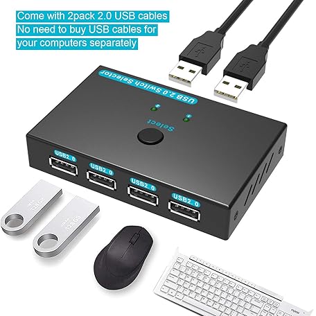 Sản phẩm SGEYR 4 Ports USB 2.0 Switch 2 in 4 Out USB Switch with 2 USB Cable Kits for 4 USB Parts 2 PCs for Printers, Scanners, Keyboards, USB Sticks, Hard Drives, Mouse etc đang được bán với giá ưu đãi là $8.5347 tại nước Đức.