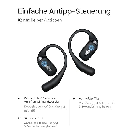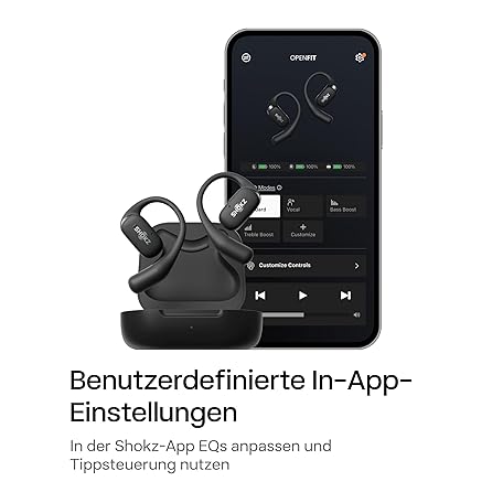 • SHOKZ OpenFit True Wireless Earbuds, Open-Ear Bluetooth Kabellose Kopfhörer mit Noise-Cancelling Mikrofon, Ohrhörer mit schnellem Aufladen, 28 Std Laufzeit, IP54 Wasserdicht, mit Tragetasche, Schwarz