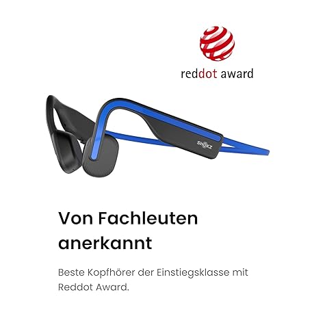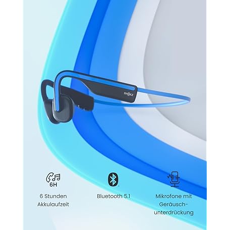 • SHOKZ OpenMove Knochenschall Kopfhörer, Open-Ear Sport Bluetooth Ohrhörer mit Noise-Cancelling Mikrofon, IP55 wasserdichtes kabelloses Headset zum Laufen, 6 Stunden Spielzeit, mit Aufklebern, Blau
