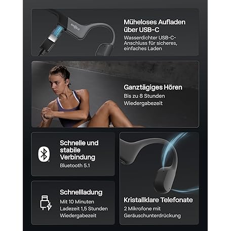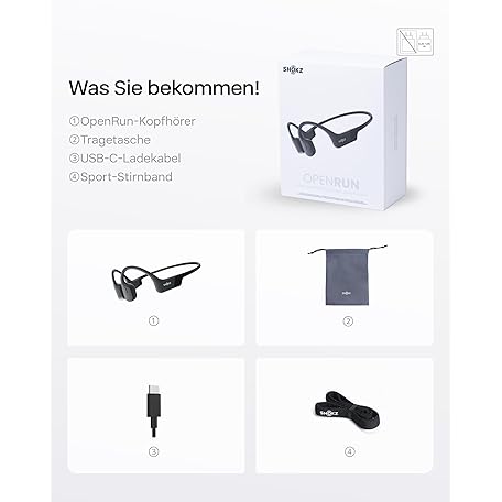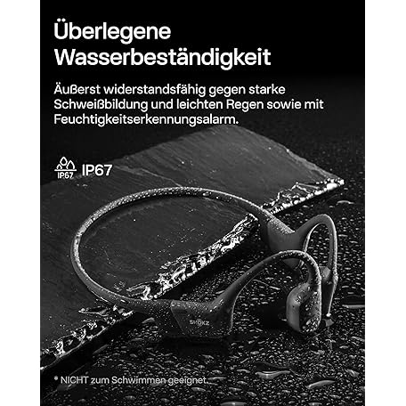 Thông tin sản phẩm SHOKZ OpenRun Knochenschall Kopfhörer, Open-Ear Sport Bluetooth Kopfhörer mit Noise-Cancelling Mikrofon, IP67 wasserdichte kabellose Ohrhörer zum Laufen, 8 Std Spielzeit, USB-C, mit Sport-Stirnband