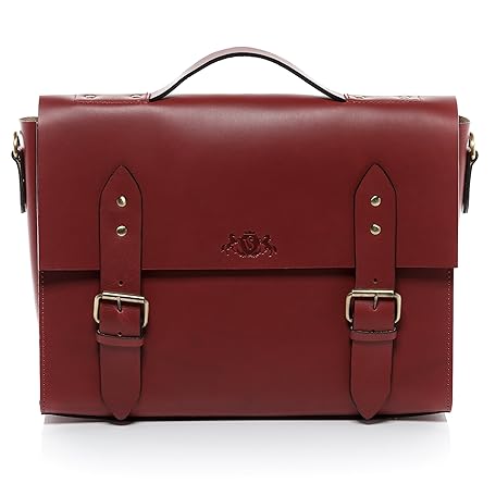 SID & VAIN Boston Saddle Leather Briefcase I Business Bag Large for Men 15 Inch Laptop Compartment I Work Bag Laptop Bag Handmade, red