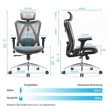 Thông tin sản phẩm SIHOO Ergonomic Desk Chair, Swivel Chair with Adjustable Lumbar Support, Headrest and Armrest, Height Adjustment and Rocker Function, Back-Friendly, Office Chair Load Capacity: up to 150 kg (330 lbs)