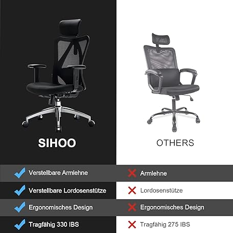 Thương hiệu SIHOO là cái tên nổi tiếng được rất nhiều khách hàng trên thế giới chọn lựa. Với kiểu dáng đẹp mắt, sang trọng, sản phẩm SIHOO Ergonomic Desk Chair, Swivel Chair With Adjustable Lumbar Support, Headrest And Armrest, Height Adjustment and Rocker Function, Back-Friendly Office Chair, Load Capacity: up to 150 kg là sự lựa chọn hoàn hảo nếu bạn đang tìm mua một món cho riêng mình.