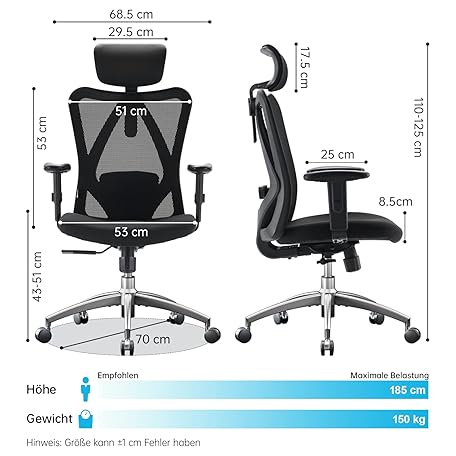 Thông tin sản phẩm SIHOO Ergonomic Desk Chair, Swivel Chair With Adjustable Lumbar Support, Headrest And Armrest, Height Adjustment and Rocker Function, Back-Friendly Office Chair, Load Capacity: up to 150 kg