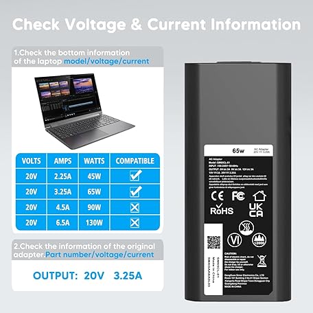 Thông tin sản phẩm SiKER 65W USB C Laptop Charger Compatible with Dell Latitude 3330 3340 3440 3540 5330 5340 5430 5440 5530 5540 7330 7340 7430 2-in-1, Fit Phone, Tablet, and Other USB-C Laptops