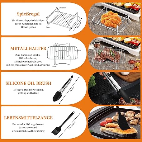 Thông tin sản phẩm Silicone Mould for Hot Air Fryer, Pack of 2, Double Layer Grill Rack, Hot Air Fryer Accessories for Air Fryer Ninja AF300EU AF400EU, COSORI 8.5L, Cookwise 9L, Microwave, Oven
