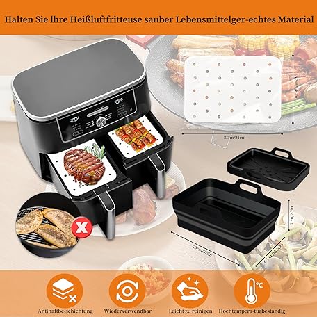 Sản phẩm Silicone Mould for Hot Air Fryer, Pack of 2, Double Layer Grill Rack, Hot Air Fryer Accessories for Air Fryer Ninja AF300EU AF400EU, COSORI 8.5L, Cookwise 9L, Microwave, Oven đang được bán với giá ưu đãi là $26.051 tại nước Đức.