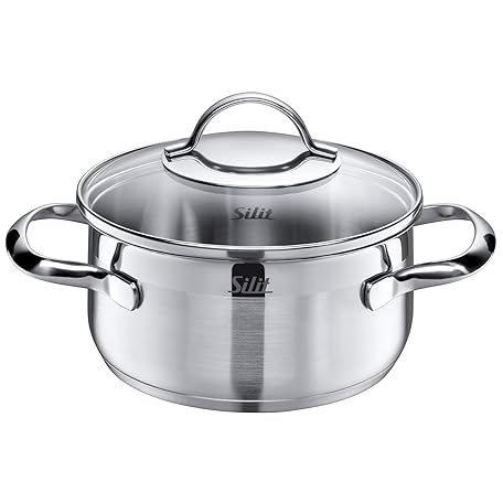 Silit Cooking Pot Diameter 16 cm Approx. Silit Pisa Cooking Pot, 1.4L, Pouring Rim, Glass Lid, Polished Stainless Steel, Suitable for Induction Cookers, Dishwasher Safe, Ø 16 cm