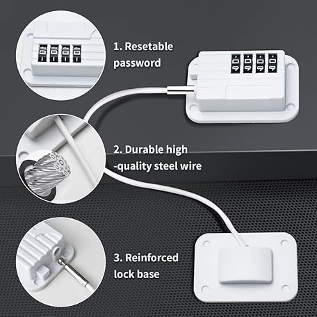 Thông tin sản phẩm Simpls Fridge Lock, 4-Digit Combination Lock for Fridges, Freezers and Cabinets, Installation No Drilling, Child and Pet Safe, Durable, Easy Installation