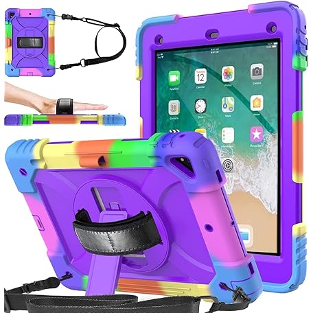 SINSO iPad 6th Generation Case, iPad 5th Generation Case, iPad 9.7 Case, Shockproof [360 Swivel Stand][Hand Strap] [Pencil Holder] Kids Case for iPad 9.7 inch 2018/2017, iPad Air 2/1, Purple
