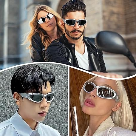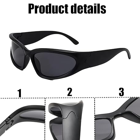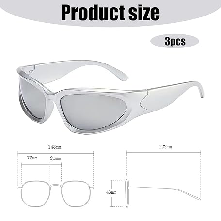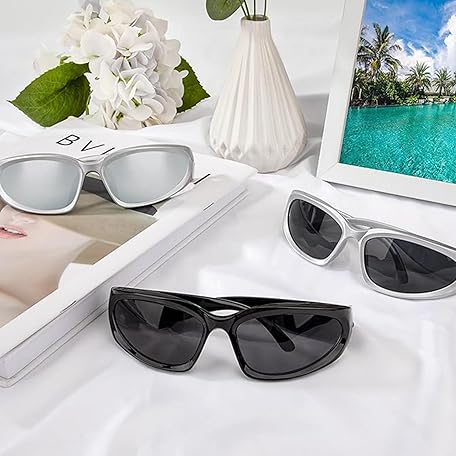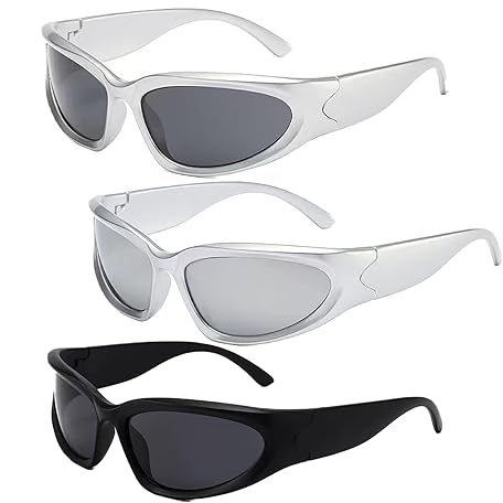 SIXHAOBU Pack of 3 Y2k Retro Glasses, Sunglasses Men Women, Lightweight Wrap Around Sunglasses, Polarised Sports Glasses, Trendy Retro Bicycle Glasses, Rectangular Rave
