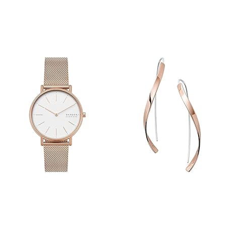 Skagen Damen Signatur Roségoldfarbene Edelstahl Uhr und Kariana Ohrringe, Set