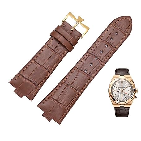 SLCHJX Echtes Leder-Uhrband für Vacheron Constantin Overseas Serie 4500V 5500V P47040 Edelstahlschnalle MAMS Uhrengurt 25-8mm