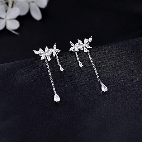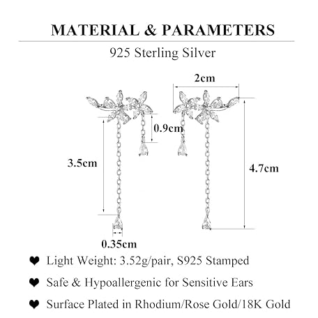 Thông tin sản phẩm SLUYNZ 925 Sterling Silver Drop Earrings Chain for Women - Flowers, Crawler, Threader and Tassel Dangle