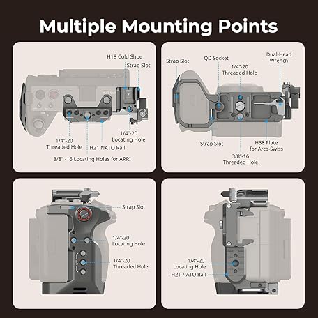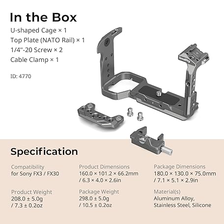 Thông tin sản phẩm SMALLRIG FX3 / FX30 HawkLock Quick Release Camera Cage Kit for Sony with Cable Clamp, Built-in QR-Cold Shoe NATO Rail/QR Plate for Arca, Modular Design - 4770