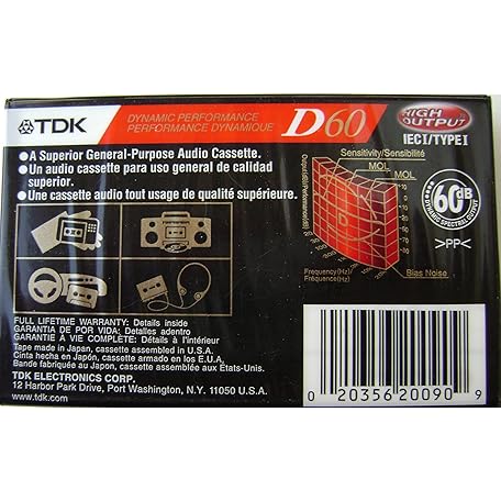 Thông tin sản phẩm Smartbuy TDK D60 ICE I/Type I Dynamic Performance High Output Audio Cassette - A Superior General Purpose Cassette (Black, 120 min, Cassette)