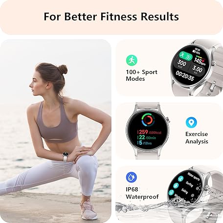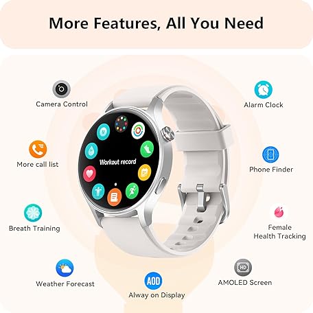 Thông tin sản phẩm Smartwatch Women Men Round with Phone Function, AMOLED Ultra Clear Screen Watches (Diameter 43 mm, 110+ Sports Modes Watch with SpO2 Heart Rate Monitor Sleep Monitor, 3ATM Waterproof Fitness Watch for