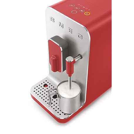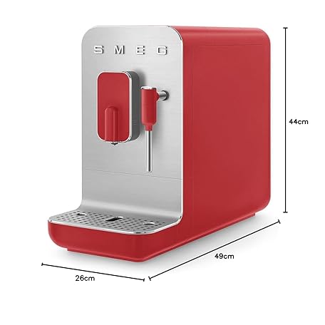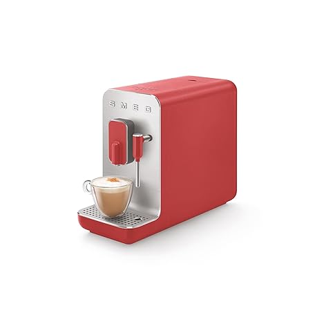 Thông tin sản phẩm Smeg, BCC02RDMEU Fully Automatic Coffee Machine with Steam Function, Steam Nozzle, Integrated Grinder, Thermoblock System, 1.4 L Tank, 19 Bar Pump Pressure, Compact Measurements, 1350 W, Red