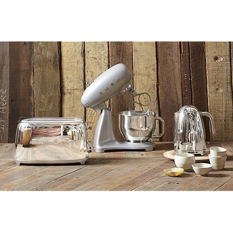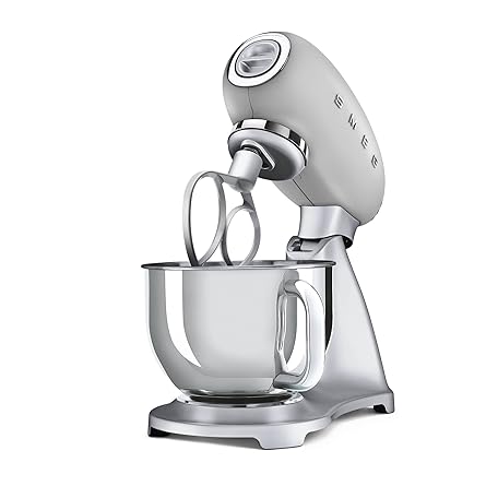 Thông tin sản phẩm Smeg, SMF02SVEU Food Processor, 10 Speed Levels, Planetary Mixer, Safety Shut-Off, 2 Whisks, Stainless Steel Ball Handle, 800 W, Silver